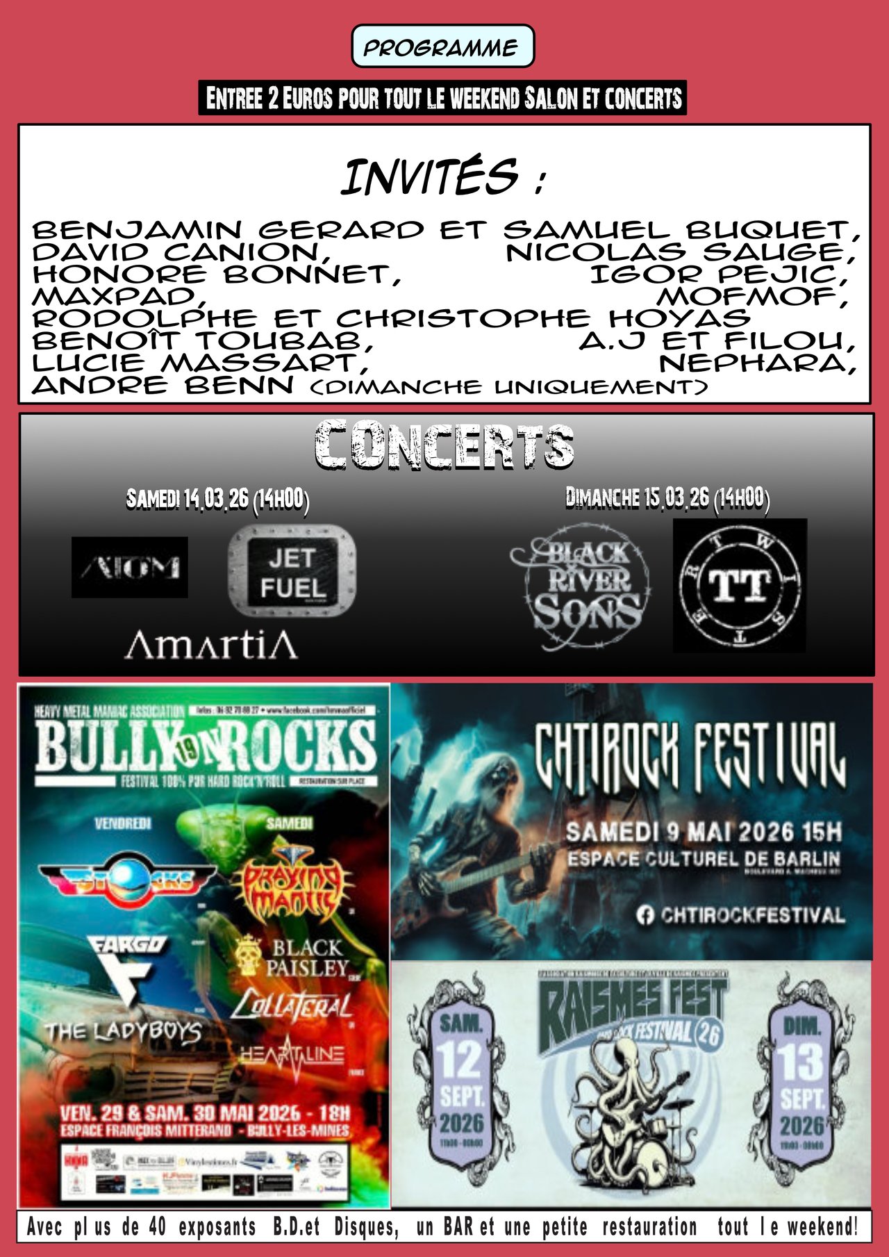 Jeu concours et expo du Salon du disque et de la BD avec le programme du salon en visuel.
